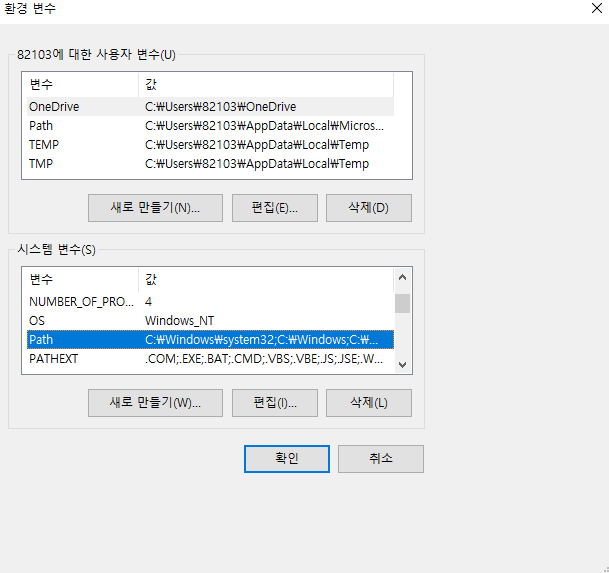 설치를한후 고급시스템설정 보기에 환경변수를 들어가